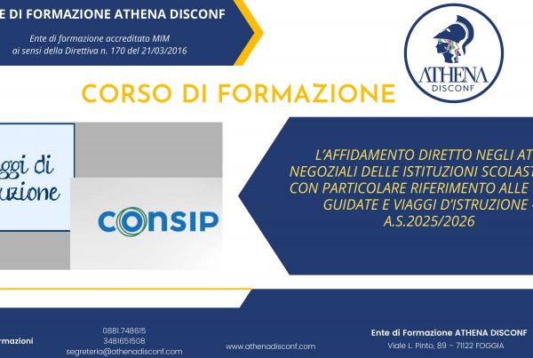 Athena Disconf è un ente di formazione accreditato presso il Ministero dell’Istruzione e del Merito con direttiva n. 170/2016. La nostra storia ci vede da sempre al fianco del personale della scuola attraverso la progettazione di interventi formativi specifici, finalizzati all’acquisizione delle competenze richieste dalla rapida evoluzione del sistema scolastico italiano.